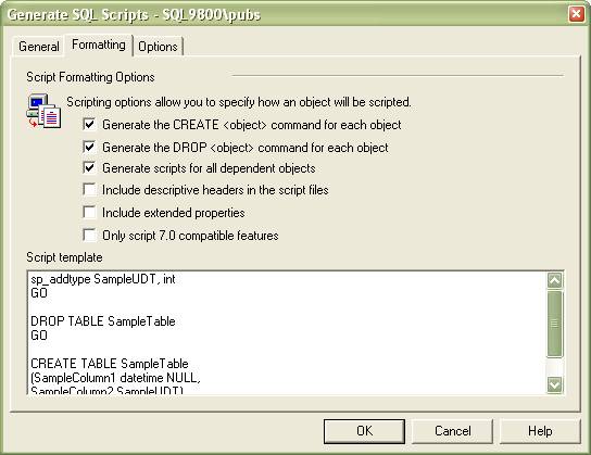 5. In the Script Formatting Options section, choose whether or not to generate the DROP statements and dependent objects. Note that this is an option, not a requirement.