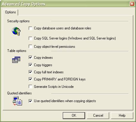 Now you should have all data and tables copied. It is now time to get the other SQL Server objects. Repeat the steps mentioned above until you arrive at the following dialog box: